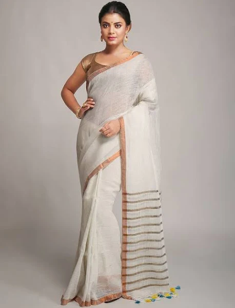 Sunlit Charm – Handwoven Pure Linen Saree in Pastel Hues